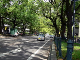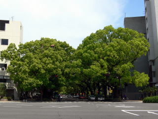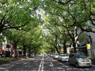 クスノキの並木が宮崎県庁前の通りを東西に貫いています。