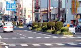 宮崎駅方面への高千穂通りのような連続した植栽でははないようです。どちらかといえば、街路灯が目立つ景観です。電線の地中化工事、歩道工事などで街路樹が消えたのでしょうか、あるいはこれから植栽が始まるのでしょうか。
