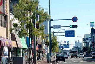 旭通りは、暫くは街路樹はありませんが、間もなく川原町付近から東はシマトネリコ(モクセイ科トネリコ属)が両サイドに植えられています。