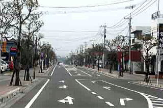 その交差点をさらに突っ切って宮崎空港へ延びる道路(県道337号線)は、高木の街路樹はありませんが、左右に低木仕立てのツツジの植え込みがあります。