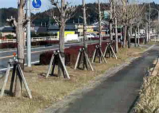 ただし、10号線バイパスは、部分的には片側一車線の区間もあり、この街路樹は、その間途切れます。