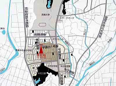 下の地図は、団地内の案内表示板を撮り、路線名などを追記したものです。 街路名は、この案内表示板に従って説明します。