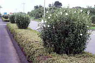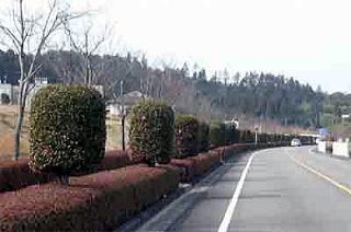 学園木花台学園通線は、宮崎大学正門前を過ぎた後、福祉ゾーンへ向けて延びていますが、街路樹は、サザンカとサツキの組み合わせとなり(703)、さらにその先は、写真(704)に見るようなサツキと今の時期ははっきりしませんがムクゲと思われる分枝の多い低木(1223)との組み合わせとなって福祉ゾーンに達します。