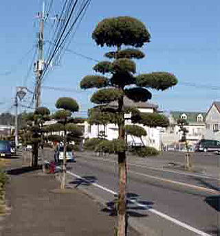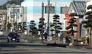 中心部は役場付近をはじめ、ラカンマキの剪定された姿がかなりの区間にわたって市街地の景観を形成していました。