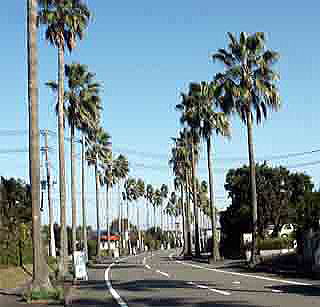 宮医大前は、338号線からの宮医大入口にかけて、ワシントンヤシの並木が目立ちます(4538)。