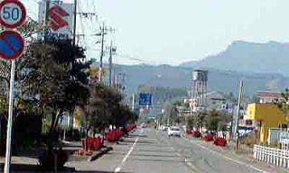 しかも、このモッコク並木と真っ赤なケイトウは、役場前からさらに先へ延び、357号線との交差点(高岡、都城へ)まで長い区間続きます。