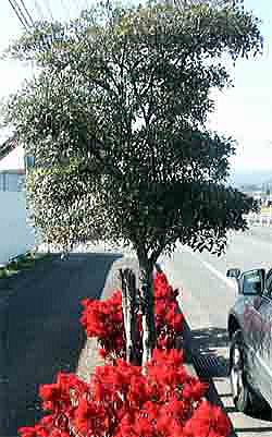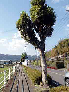 26号線は、357号線との交差点(高岡、都城へ)を過ぎると、片側だけですが、ホルトノキが植えられています。