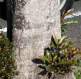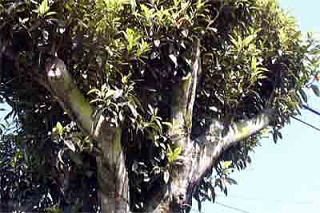 かなり大きな木ですが、街路樹として剪定されていますので、ホルトノキの特徴ある赤い葉は殆ど見られませんでした。