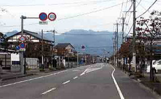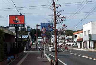 西都市のメインストリート219号線は、多くの古い幹線道路がそうであるように、街路樹を植える余裕はないようで、植栽はありません。