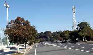 延岡市は、常緑の街路樹が少ないのかと思っていましたら、西階運動公園前の道路は、両サイド常緑のホルトノキ(ホルトノキ科ホルトノキ属)の並木でした。