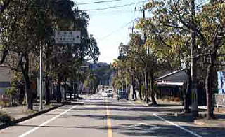 飫肥本町の222号線と並行して飫肥地区を走る432号線は、イチョウ並木となっています。