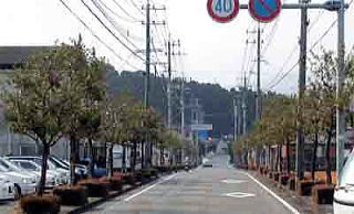 踏切を渡り、九州グンゼ工場方面は、クロガネモチの並木が続いていました。