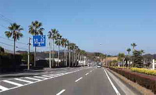 10号線亀崎付近から230号線を細島地区に向かう道路は、左右ワシントンヤシが植えられています。十分に背の高いワシントンヤシで、植栽区間も長く、適当な道路の曲線と相まって、見栄えのある見事な街路樹景観を形成していました。