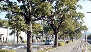 また、細島臨海工業地帯のメイン道路15号線も立派なクスノキの並木でした。
