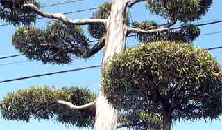 市役所付近は、これといった街路樹はなく、市役所敷地の境界木として仕立てられたイヌマキ(マキ科マキ属)(ラカンマキと思われます)が目につきました。