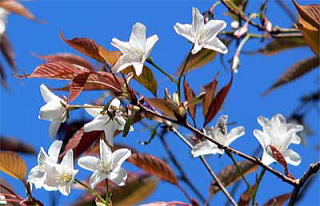 葉と同時に開花しますが、赤褐色の若葉と白色の花とのバランスもなかなか綺麗です。