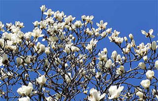 3月中旬には、各地でハクモクレンが満開です。