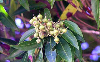 よく分枝し、高さ1〜2m、葉は革質で互生し、長さ3〜8cm。