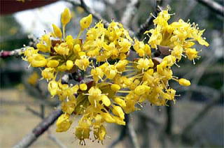 もともとは、薬用として中国、朝鮮半島から日本に入ってきたミズキ科の落葉小高木ですが、別名を春黄金花といわれるように、早春の美しい花が注目され、今では観賞用として庭園などに植えられています。