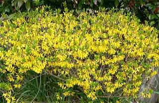 観賞用として植えられますが、道路沿線を飾っているレンギョウも多く見られます。