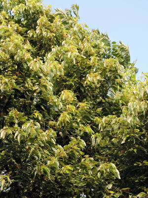 花期は夏というので、毎年初夏のうちから、栽植されたニッケイを調べているのですが、クスノキの仲間らしく、花は目立たない木なので、なかなか花を観察する機会がありませんでした。