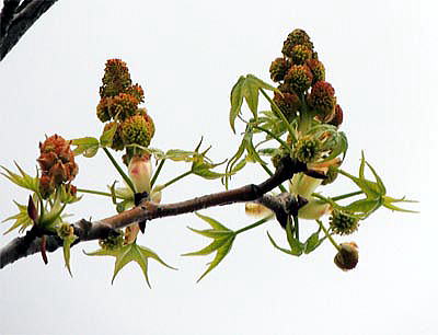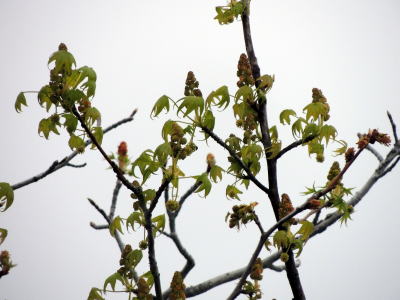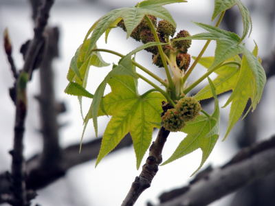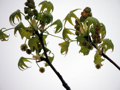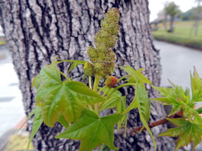 DSCN5121bモミジバフウ雌・雄花序 14.04.11生目の杜運動公園