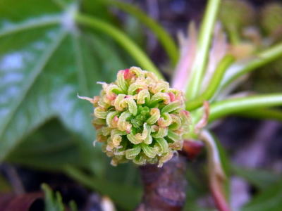 春になり、あっという間に花が咲いたかと思うと、入れ替わるように新葉が芽吹くため、モミジバフウの花をじっくりと観察するタイミングを毎年、失っていましたが、2014年4月上旬、ようやく、花を観察しましたので、写真を追加しました(3段目右〜8段目の8枚の写真)。
