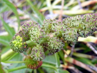 雌花序も球形。果時には径3〜4cmの集合果となる。