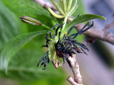 花粉を散らしている雄花