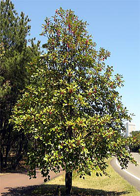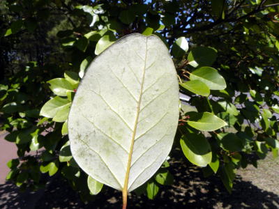 南方系の樹木らしく、葉は卵形で、厚く、堅い葉です。