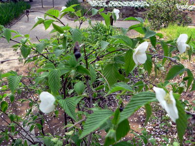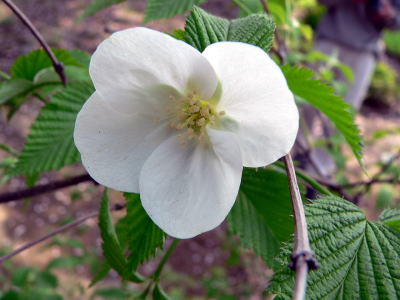 ヤマブキと異なり,葉は対生する。