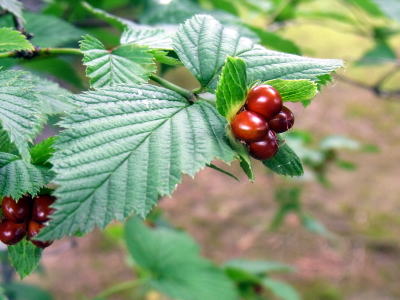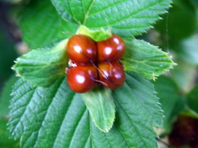 果実は、核果が4個稔る。がく片は果期まで残る。
