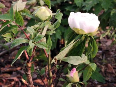 古来から美しい花として、シャクヤクと並び称されるボタンの花が開花しているのを見かけました。