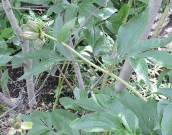 花径20cmほどの大きくあでやかな花ですが、葉が裏返るくらいの強い風に揺れ、上手く撮影できませんでした。