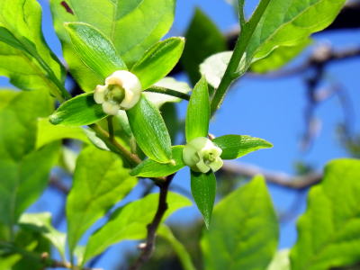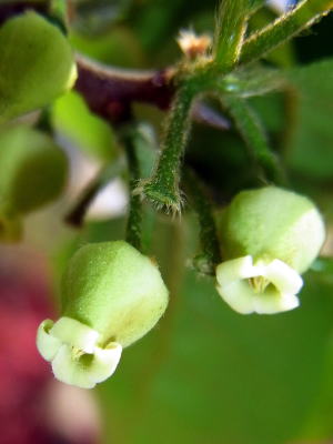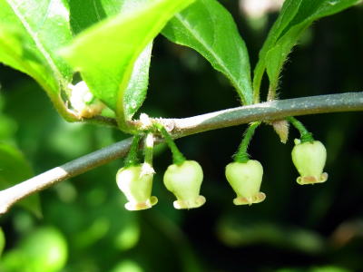 カキの花よりもちょうど一回り小さい、緑色を帯びた黄白色の可愛い感じの花です。