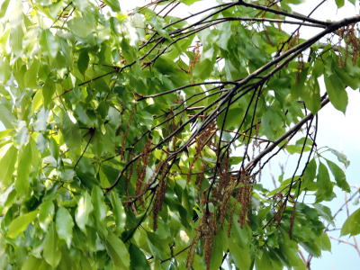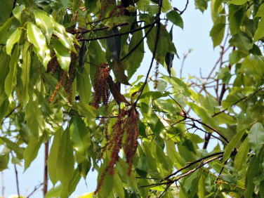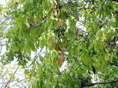 常緑高木ですので、下の方の枝から下がる花を撮影しました。