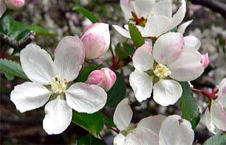 霧島山中の渓流の岸に映えるバラ科リンゴ属の落葉小高木で、えびの高原のノカイドウは、国の天然記念物に指定されている貴重なものです。