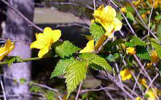 和名の山吹(やまぶき)の語源は、山振といい、枝が弱々しく風のまにまに吹かれて揺れやすいことを表したそうです。