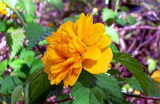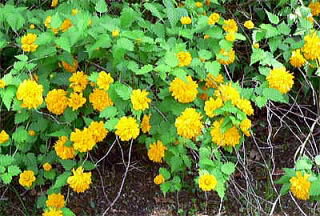 八重咲きのヤエヤマブキ(園芸種)は、太田道灌の詠んだ歌 『七重八重 花は咲けども山吹の 実のひとつだになきぞ悲しき』 で有名です(3〜4段目の3枚の写真)。