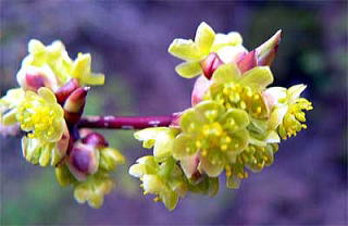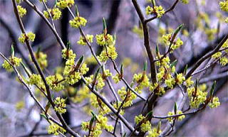 何れも、葉に先立って、あるいは葉と同時に黄色い花が固まってつきます。