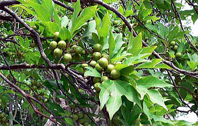果実は径1.3cm、下向きにつき、中の種子を搾って油をとり、灯油にしたといいます。