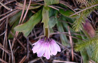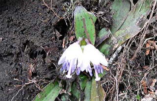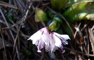 2006年3月29日、季節はずれの寒さで県道1号線はうっすらと雪が残っていましたが、ツクシショウジョウバカマはけなげに咲いていました。
