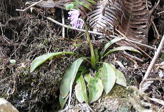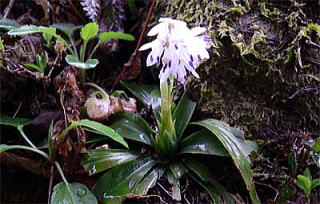 山地で、少し多湿なところに生える常緑の多年草です。