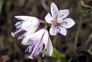 花は春に咲き、新葉の出る前に花茎を出し、径20mmほどの花を短い総状花序に数個つけます。