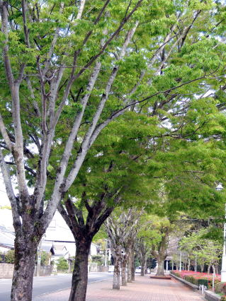 新緑の美しいケヤキ並木の写真を追加しました(5〜6段目の4枚の写真)。