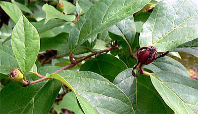 06年6月、クロバナロウバイの果実を観察しましたので、写真を掲載しました(下の3枚の写真)。