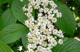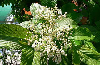 花は晩春、1〜2対の葉がある若い短枝に散房花序をつけます。