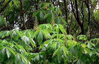 葉は、大きな掌状複葉で、中央の小葉で長さ35cmもあります。