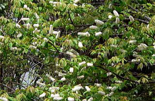 花は晩春、小枝の先に総状花序に葉が出てから咲きます。