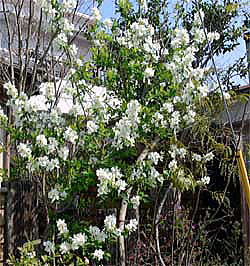 4月に咲く白い花は、新緑の中で美しく目立ち、庭木としても人気のある花木のようです。